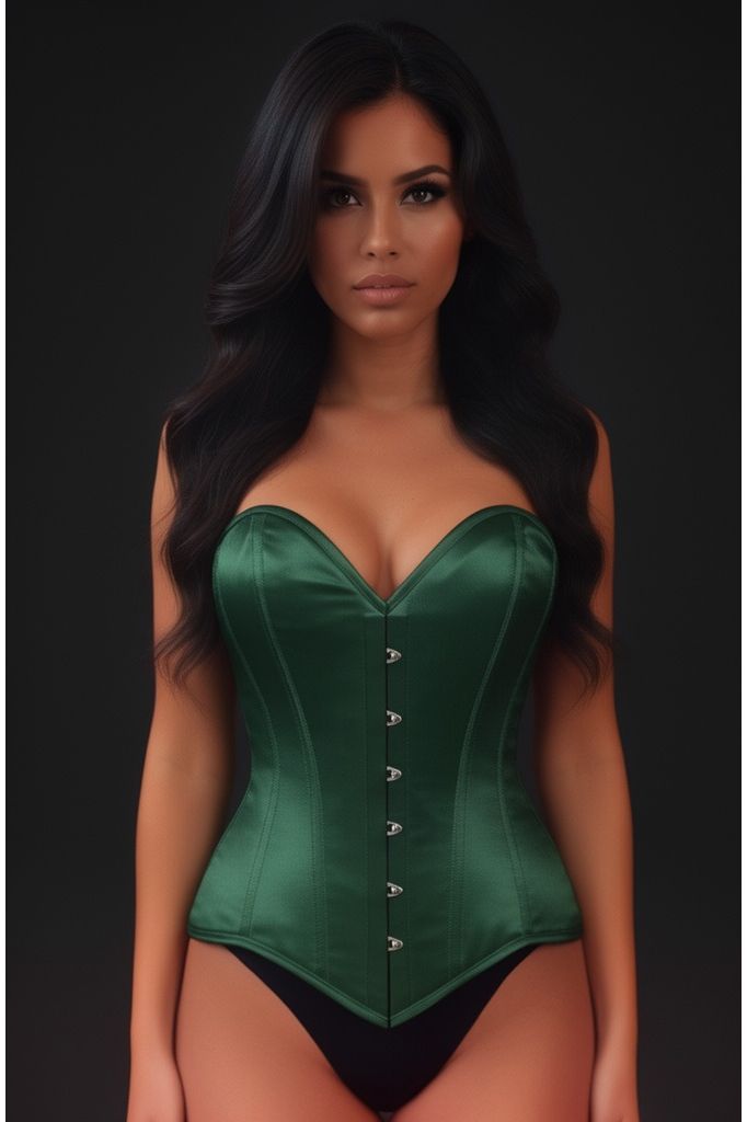 Lavish Dark Green Satin Overbust Corset Sweetheart Neckline Busk Closure