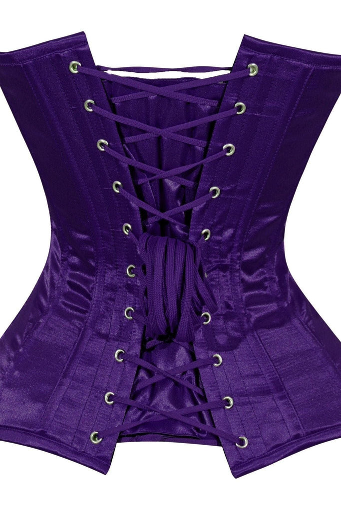 Lavish Dark Purple Satin Overbust Corset Sweetheart Neckline Busk Closure