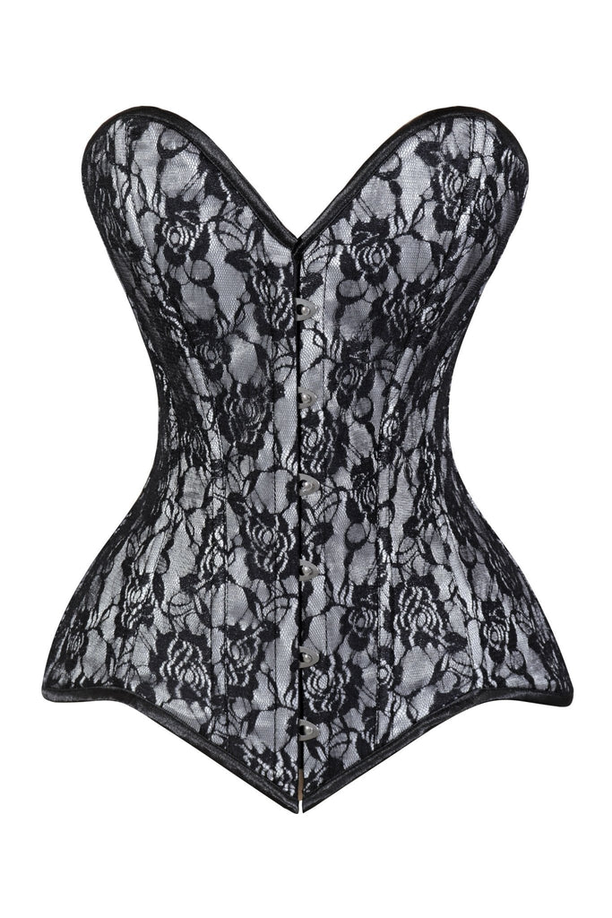 Lavish White/Black Lace Overbust Corset Sweetheart Neckline Busk Closure