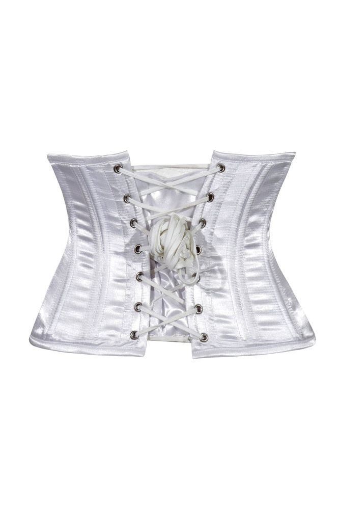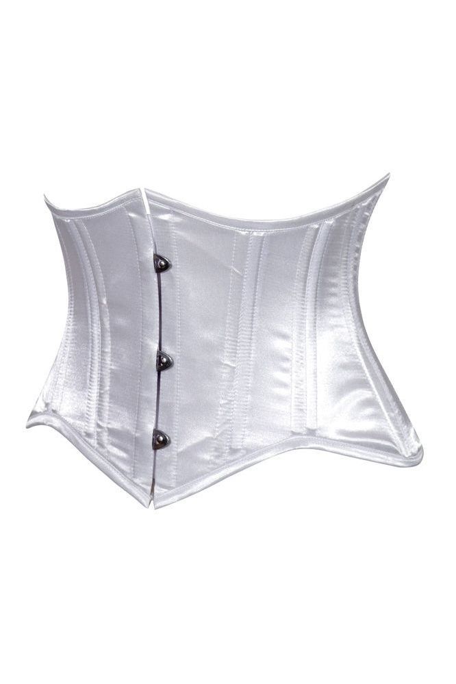 Lavish White Satin Mini Cincher Underbust Corset Waist Cincher Busk Closure