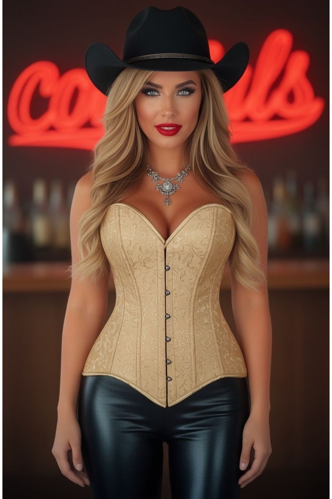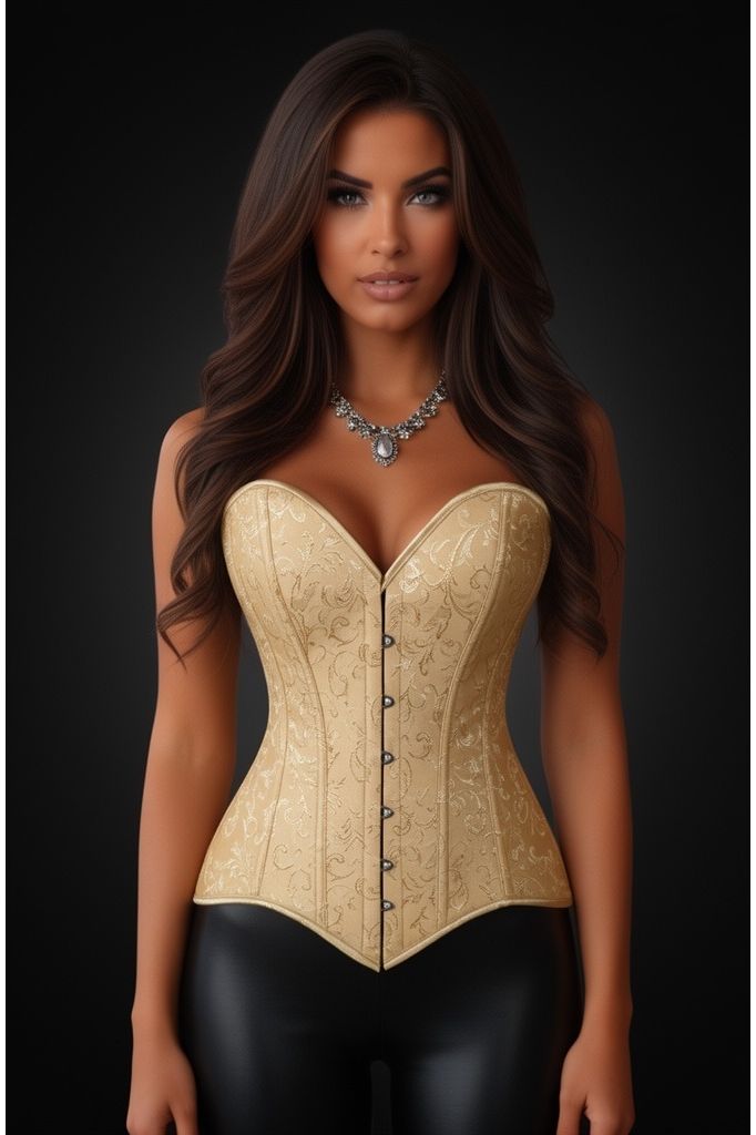 Lavish Gold Brocade Overbust Corset W/Busk Closure