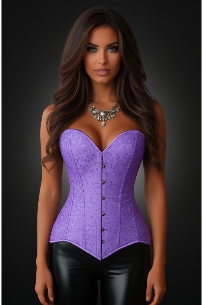 Lavish Lt Purple Brocade Overbust Corset W/Busk Closure