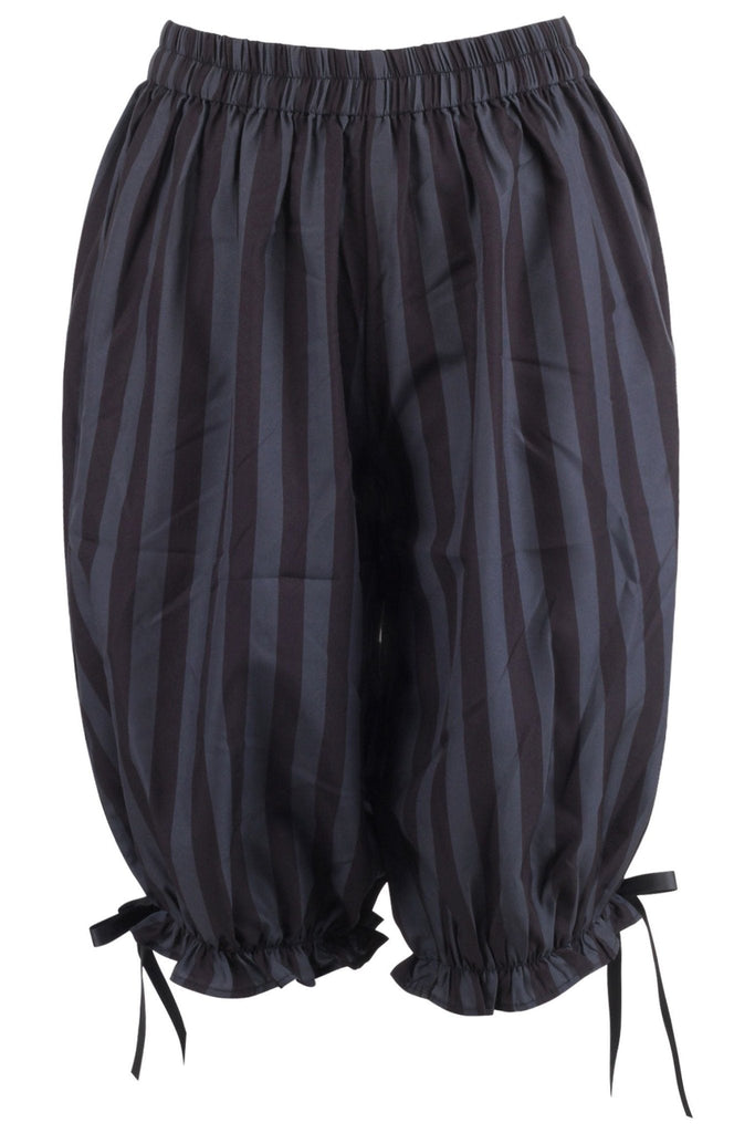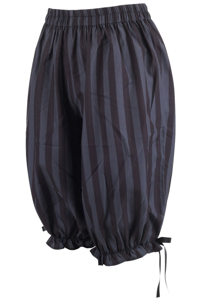 Make a bold statement with these Black & Dark Grey Striped Bloomers, a timeless piece with a playful twist. The vertical stripes elongate the silhouette while keeping the look fun and theatrical. Designed with an elastic waistband for comfort and ribbon-tied hems for adjustability, these bloomers are perfect for costumes, cosplay, festivals, or everyday alternative fashion. Pair them with corsets, skirts, or accessories for a dramatic and versatile look.