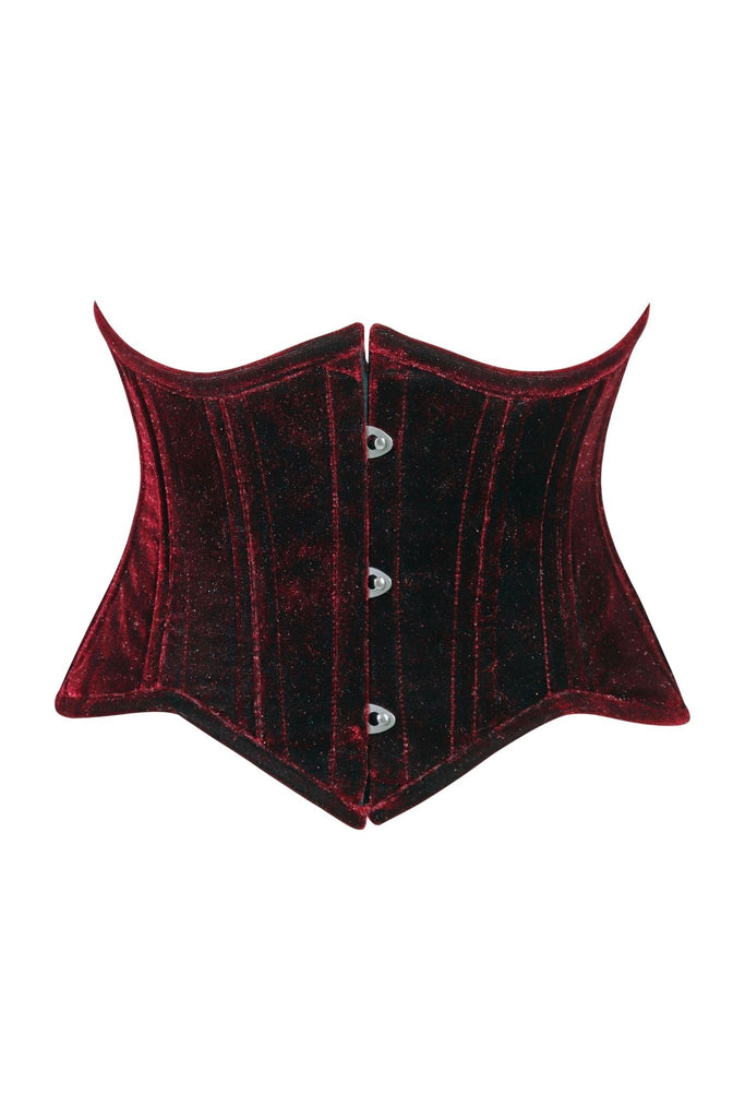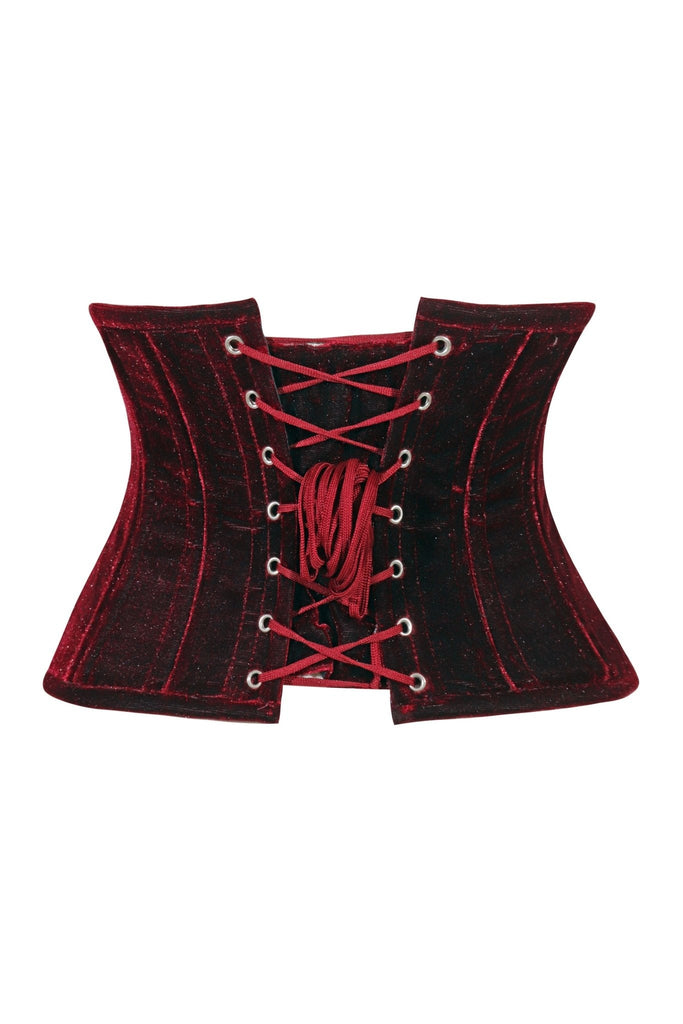Lavish Dark Red Velvet Mini Cincher Underbust Corset Waist Cincher Busk Closure