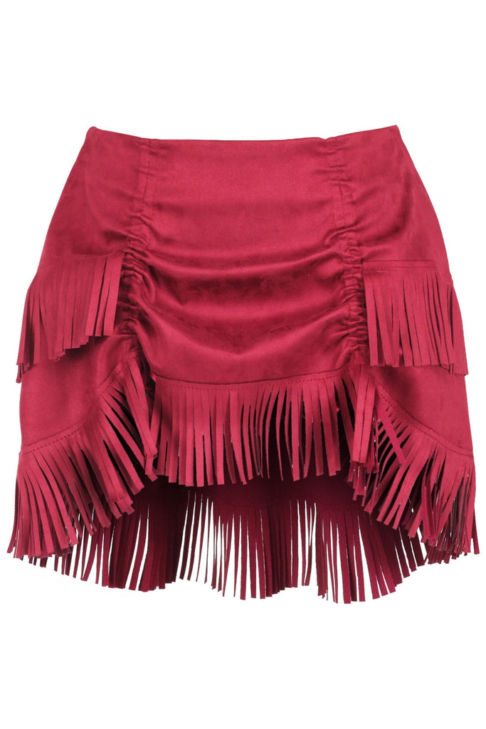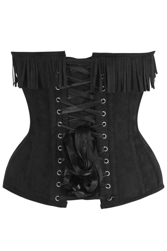 Top Drawer 4 PC Premium Black/Red Suede Fringe Cowgirl Corset Costume