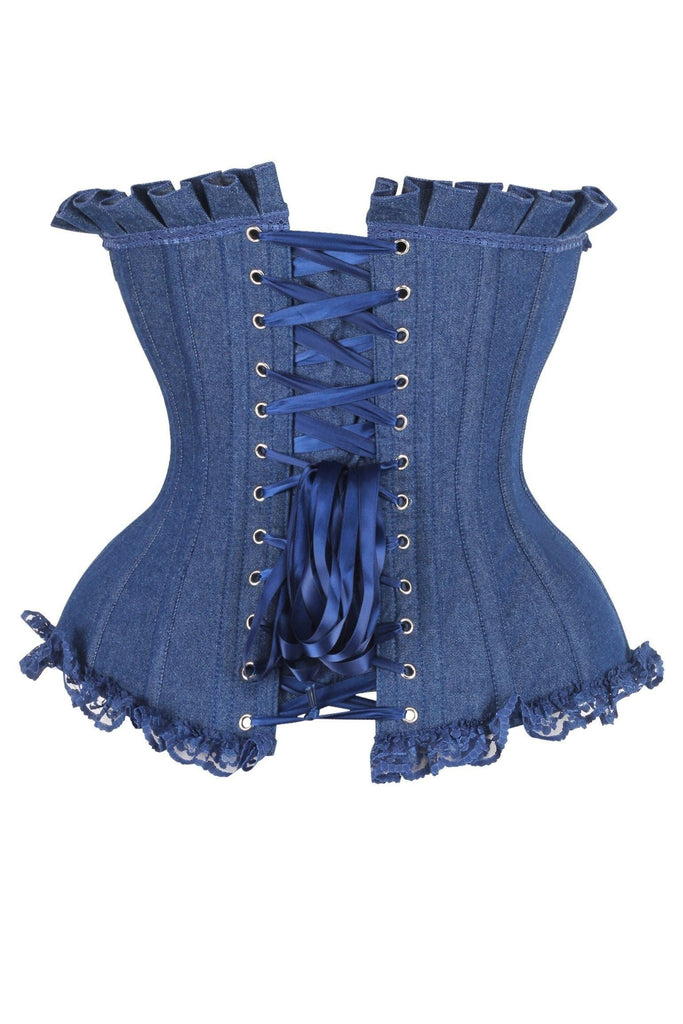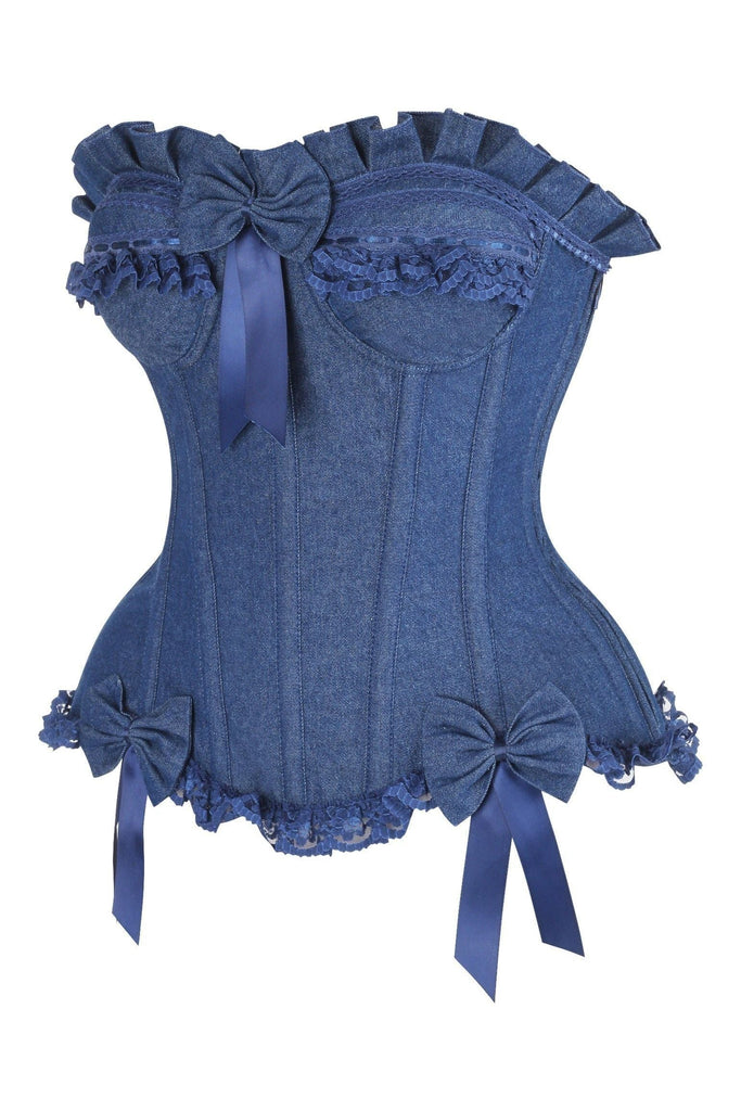 Top Drawer Dark Blue Denim Underwire Steel Boned Burlesque Corset w/Bows