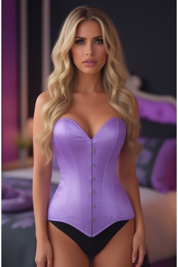 Lavish Lt Purple Satin Overbust Corset Sweetheart Neckline Busk Closure