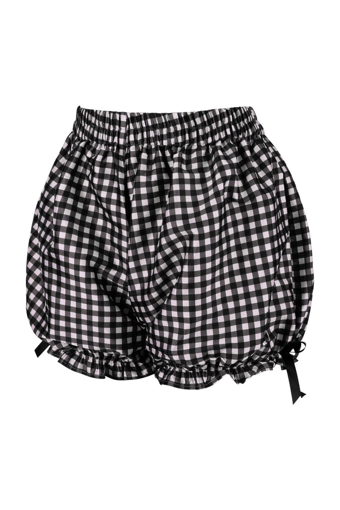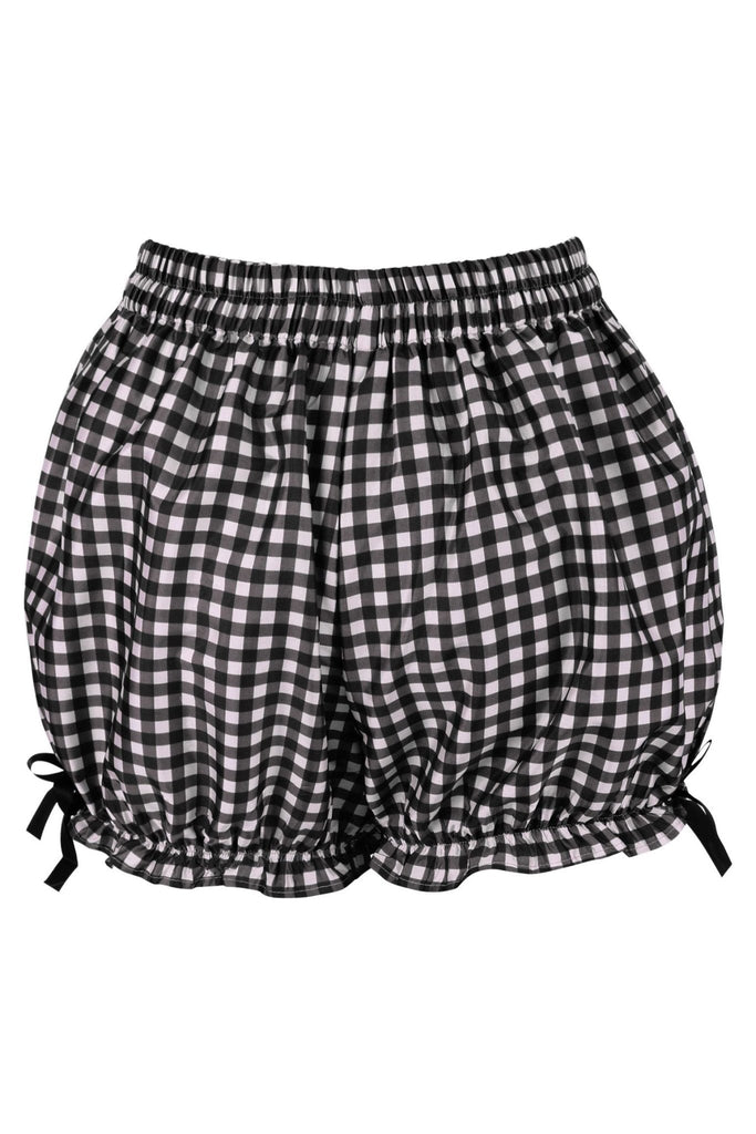 These Black and White Gingham Bloomers bring a touch of classic charm to any outfit or costume. Made from lightweight, breathable fabric, they feature a timeless gingham check pattern and a comfortable elastic waistband for a flattering fit. The ruffled hem and satin bow details add a playful, feminine finish — perfect for layering under corsets, skirts, or dresses for a vintage, festival, or cosplay look.