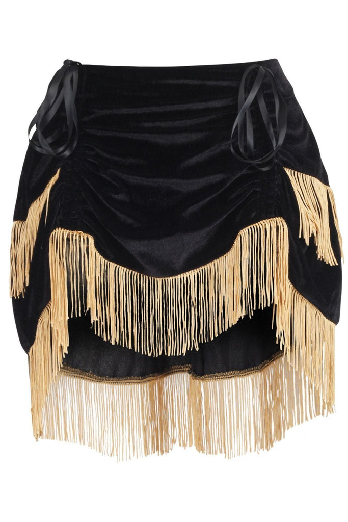 Black Velvet w/Gold Fringe Burlesque Bustle Skirt - Daisy Corsets