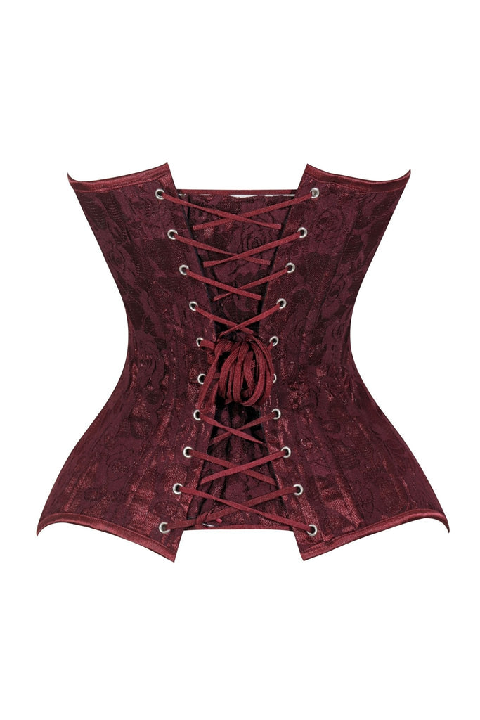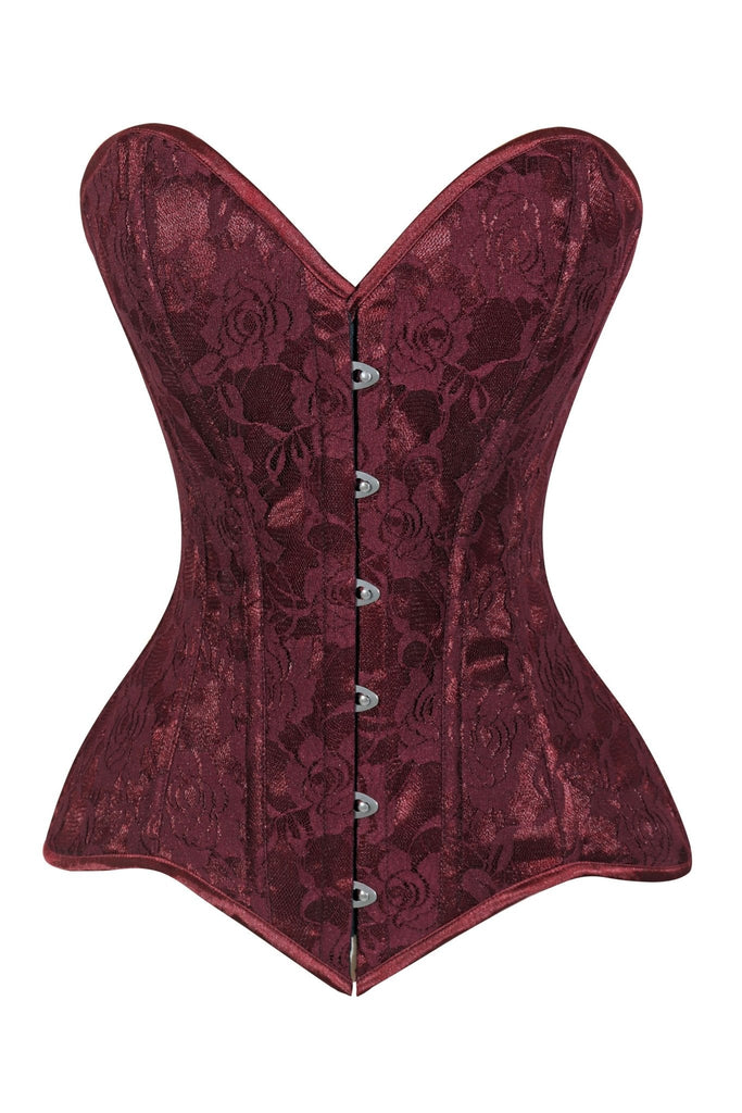 Lavish Dark Red Wine Lace Overbust Corset Sweetheart Neckline Busk Closure - Daisy Corsets