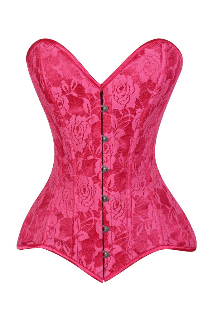 Lavish Fuchsia Lace Overbust Corset Sweetheart Neckline Busk Closure - Daisy Corsets