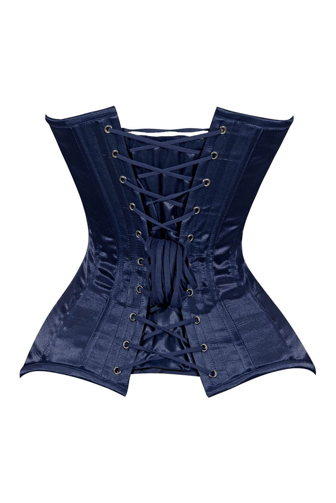 Lavish Navy Blue Satin Overbust Corset Sweetheart Neckline Busk Closure