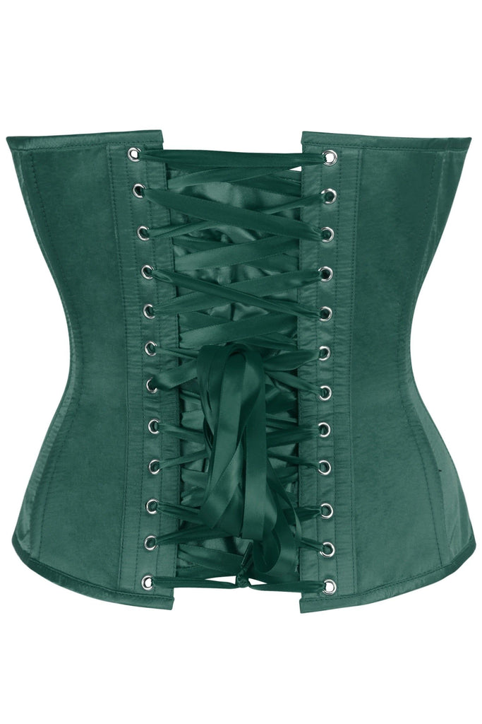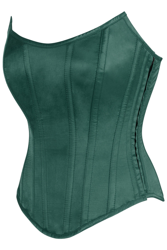Top Drawer Dark Green Satin Steel Boned Overbust Corset w/Side Zipper
